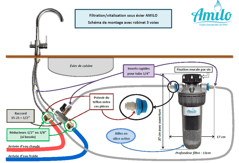 Qui filtre à eau sous évier. Le filtre sous évier ou sous meuble dans une salle d eau peut être aisément installé et reste discret tout en assurant une filtration de qualité afin d obtenir sur l évier ou le lavabo une eau limpide et purifiée n ayant ni goût ni odeur. Un filtre à eau sous l évier est un point d utilisation ce qui signifie qu il est installé à l endroit même où vous devez avoir accès à de l eau propre. Le système comprend un filtre à charbon de haute qualité qui élimine le chlore les contaminants organiques les odeurs et les toxines pour vous fournir une eau potable de très bonne qualité au robinet.